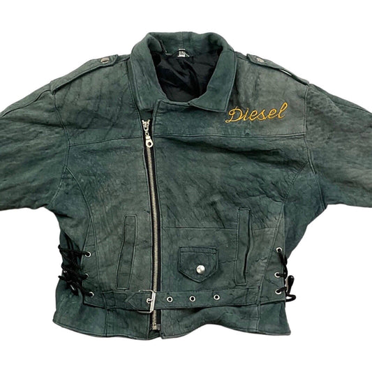 Vintage 90s Designer Grey Suede Diesel Embroidered Cropped Biker Jacket M 12 14