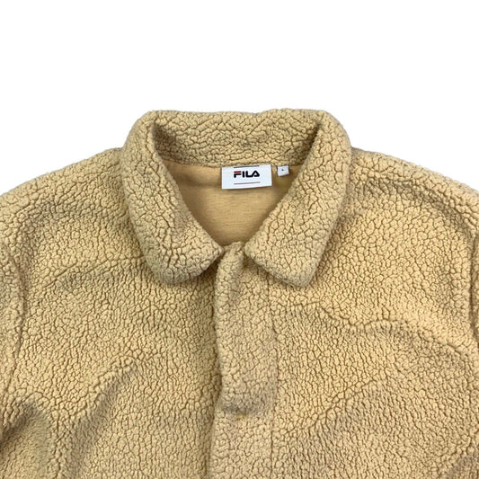 Vintage 00s Cream Fila Button Down Spellout Logo Fleece Jacket M