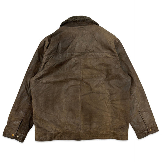 90s Vintage Brown Leather Jacket 2XL
