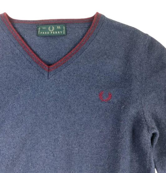 VTG 70s FRED PERRY WOOLLEN V NECK JUMPER CHARCOAL GREY BLUE SIZE S