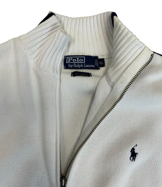 VTG 80s 90s POLO RALPH LAUREN WHITE DOUBLE ZIP UP COTTON KNIT JUMPER SIZE XL