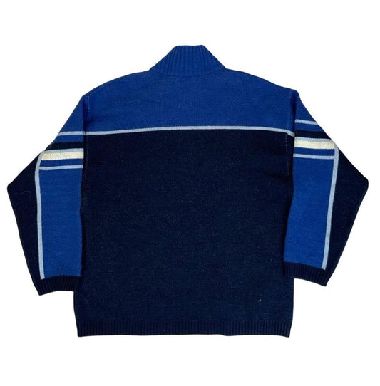Vintage 1980s Multi-Coloured Puma Knitted Button-Up Woollen Sweater Medium Large