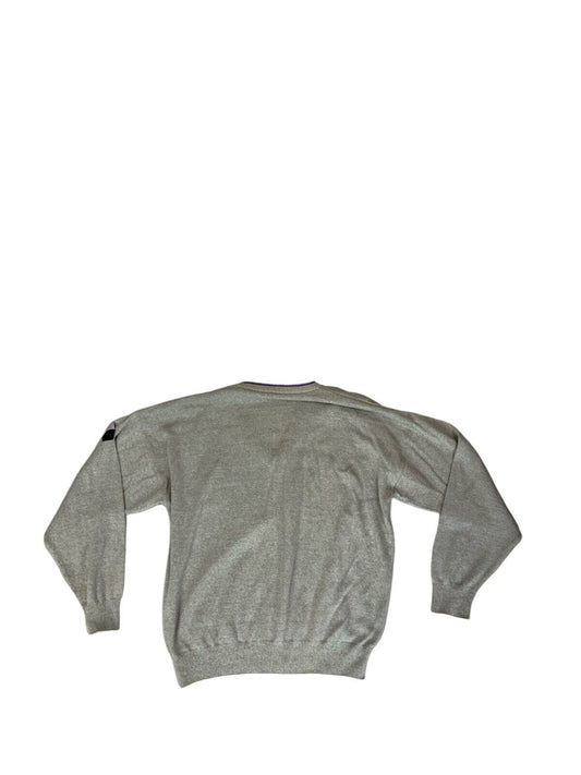 VTG 80s PUMA GREY PURPLE V NECK LOGO KNIT JUMPER SIZE XL