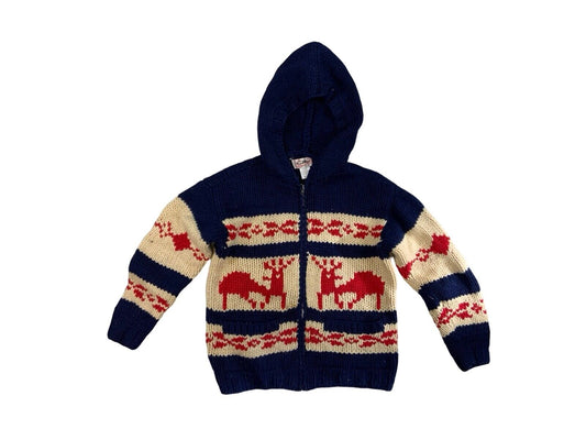 VTG NATIVE CANADIAN STYLE HANDKNIT HOOD COWICHAN CARDIGAN INDIAN ROCKABILLY M 40