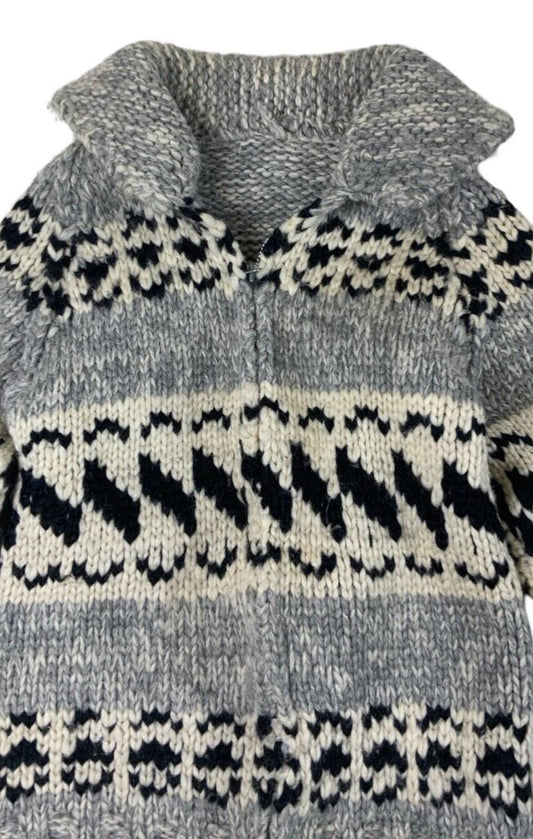 VTG 1960s NATIVE CANADIAN HANDKNIT COWICHAN CARDIGAN SALISH ROCKABILLY XS 34