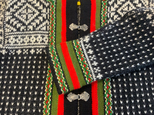 VTG 1970s TRADITIONAL NORWAY HANDKNIT WOOL FOLK CARDIGAN SCANDINAVIAN S 8