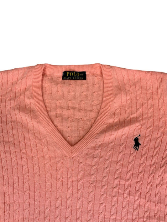 VTG 90s 00s POLO RALPH LAUREN PINK CABLE KNIT V NECK KNIT JUMPER SIZE L