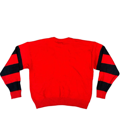 VTG 90s MICKEY MOUSE & CO DISNEY RED BLACK GRAPHIC CREW NECK KNIT JUMPER XL