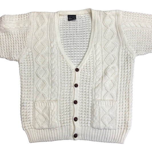Vinatage 90s White Cable Knit Button Down Cardigan 18 20 XL