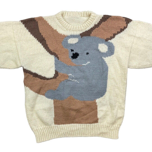 VINTAGE WOOL HAND KNIT KOALA BEAR JUMPER SWEATER GRAPHIC 80S 90S 42”