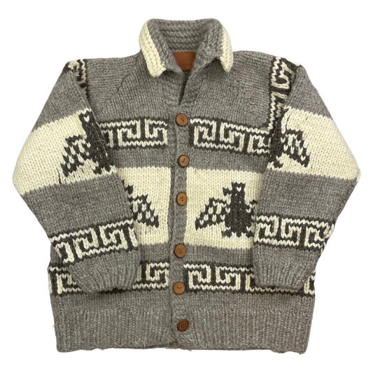 VTG MENS WOOL NATIVE CANADIAN COWICHAN GRAPHIC KNIT ROCKABILLY CARDIGAN 42” L