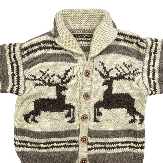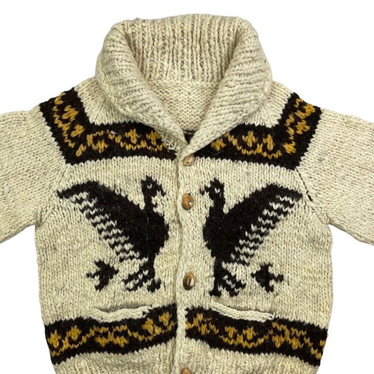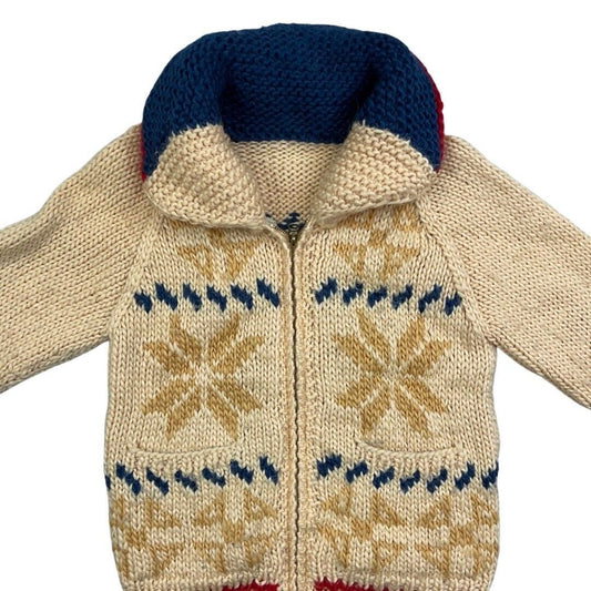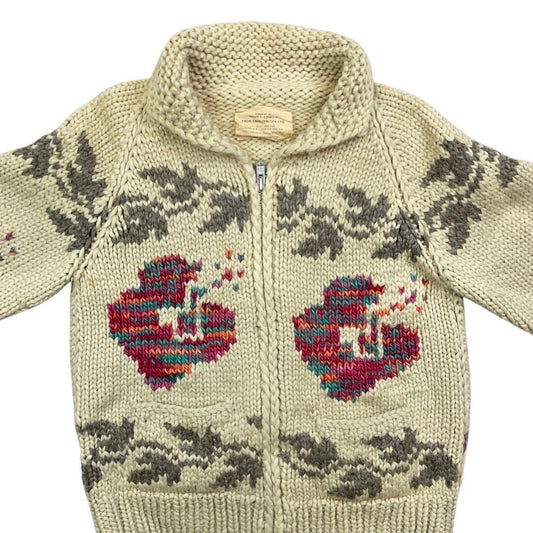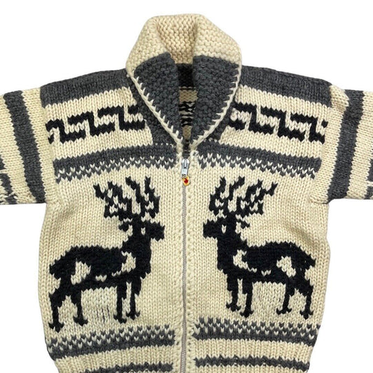 VINTAGE 60s LADIES CREAM WOOL COWICHAN GRAPHIC KNIT ROCKABILLY CARDIGAN 34” XS