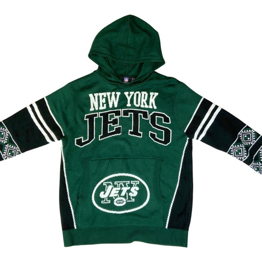 Vintage 00s Green Black White Knitted Hooded Jumper NFL New York Jets L