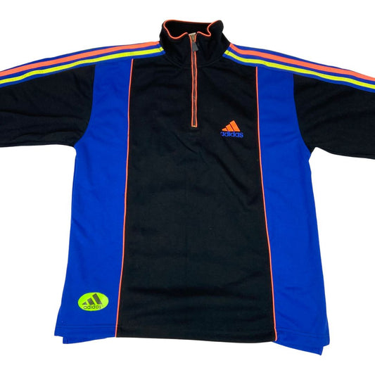 Vintage 90s 00s Black Blue Neon Embroidered Adidas Zip-Up Pullover Jumper L