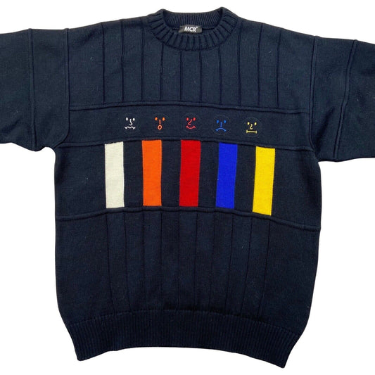 Vintage 90s 00s Novelty Black Many Faces Embroidered Knitted Jumper XL