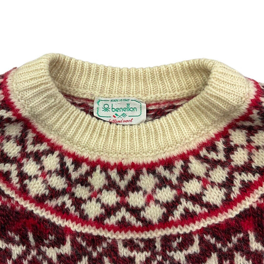 Vintage 80s Red Cream Black United Colours of Benetton Knitted Wool Jumper M