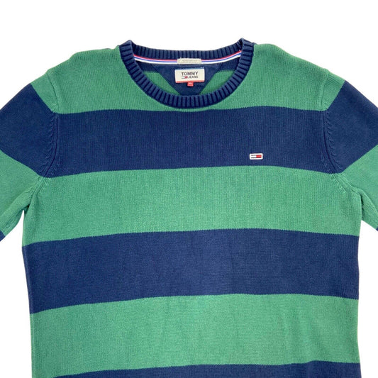 Vintage 90s 00s Navy Green Tommy Hilfiger Striped Knit Sweater XL
