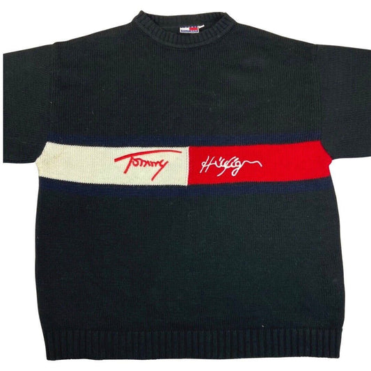 Vintage 90s 00s Black Embroidered Tommy Hilfiger Knit Sweater L