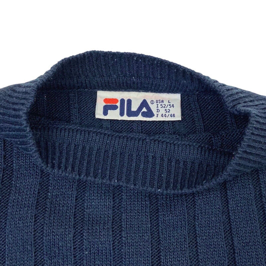 Vintage 90s Navy Blue Fila Appliqué Logo Knit Sweater XL