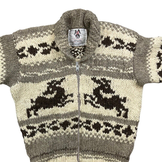 VINTAGE 70s MENS CREAM WOOL COWICHAN GRAPHIC KNIT ROCKABILLY CARDIGAN 40” M