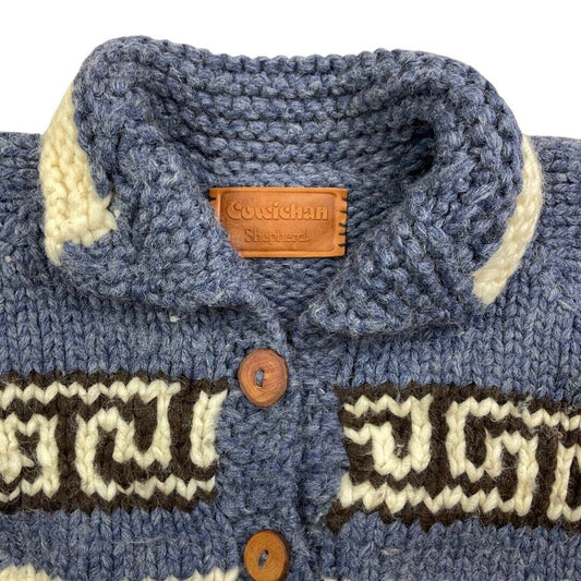 VINTAGE 70s MENS WOOL COWICHAN GRAPHIC KNIT ROCKABILLY CARDIGAN 46” L