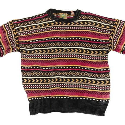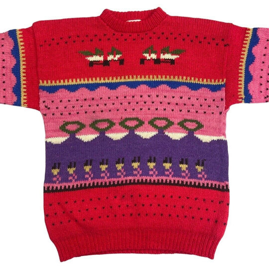 Vintage 90s Red Pink Novelty Pattern Knit Jumper L