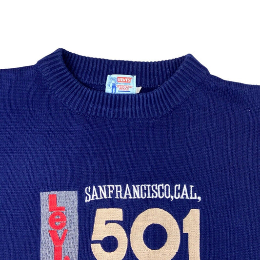 Vintage 90s Blue Embroidered Levi’s Knitted Jumper M