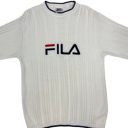 Vintage 90s White Fila Spell Out Embroidered Knit Sweater L
