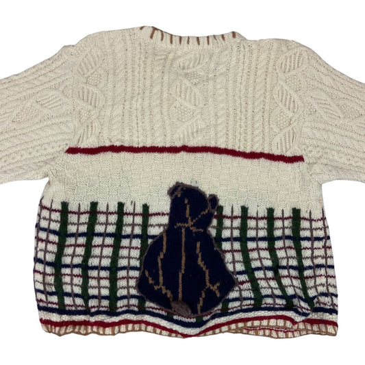 Vintage 80s 90s Beige Teddy Bear Graphic Knitted Embellished Cardigan 12 M