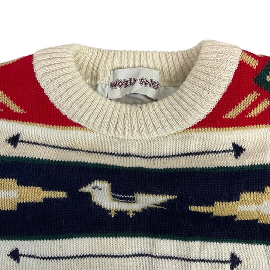 Vintage 90s 00s Red Blue Geometric Pattern World Spice Knitted Padded Jumper S