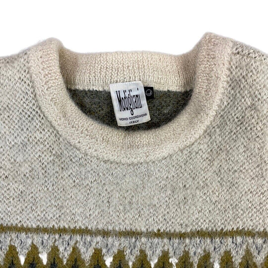 Vintage 80s 90s Cream Grey Alpaca Zig-Zag Patterned Knitted Jumper S M