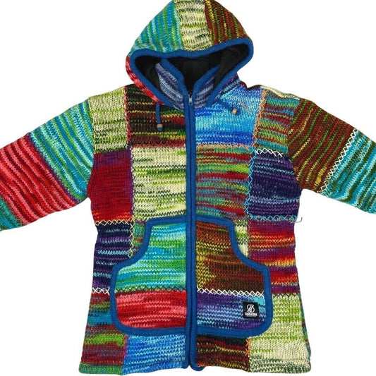 Vintage 90s 00s Blue Red 100% Wool Patchwork Shakaloha Knit Zip Cardigan 16 18 L