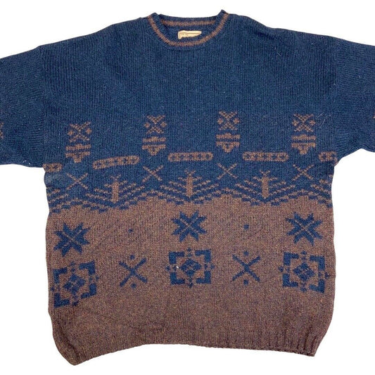 Vintage 90s Blue Brown Woolrich Made in USA Knit Jumper XL