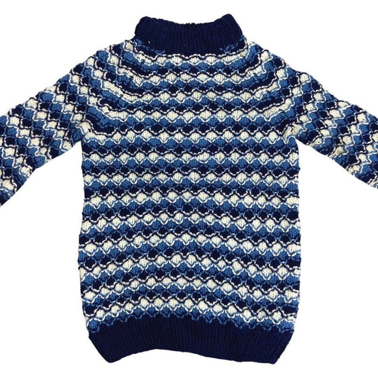 Vintage 80s 90s Blue White Diamond Mesh Handknit Jumper S