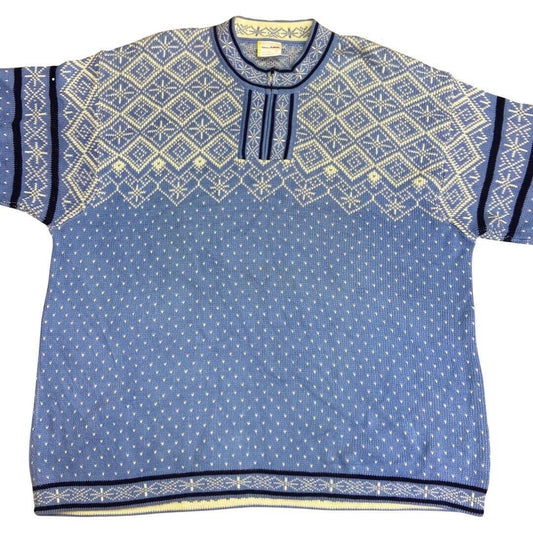 Vintage 90s Blue White Scandinavian Style 1/4 Zip Knit Jumper XXXL