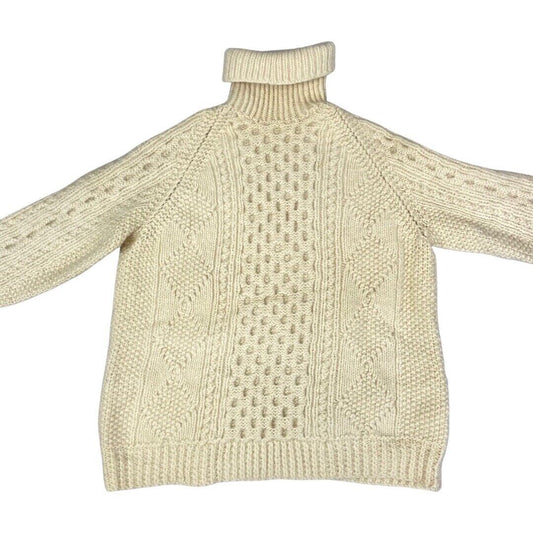 Vintage 80s 90s Cream Turtle Neck Hand Knit Sweater 12 14 M