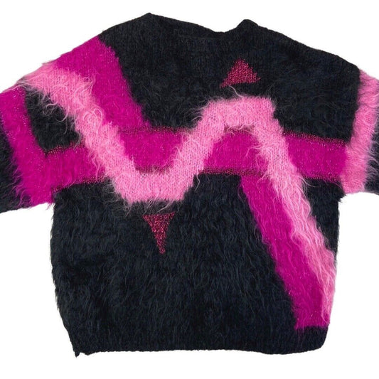 Vintage 80s Black Pink Mohair Pattern Knit Sweater 12 14 M