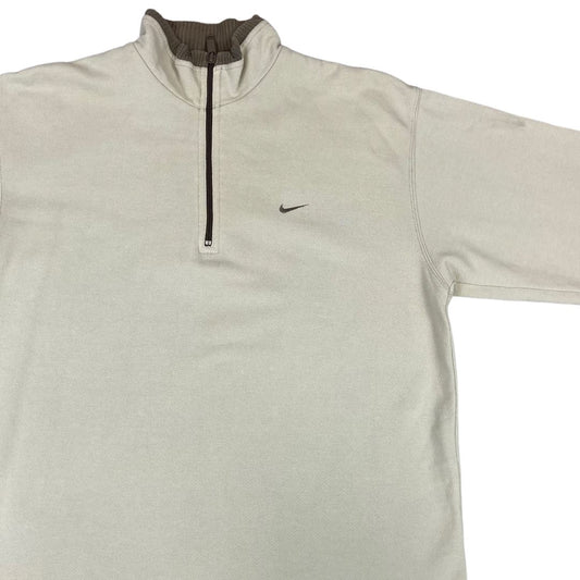 Vintage 90s Cream Waffle Fabric Embroidered Nike 1/4 Zip Jumper L