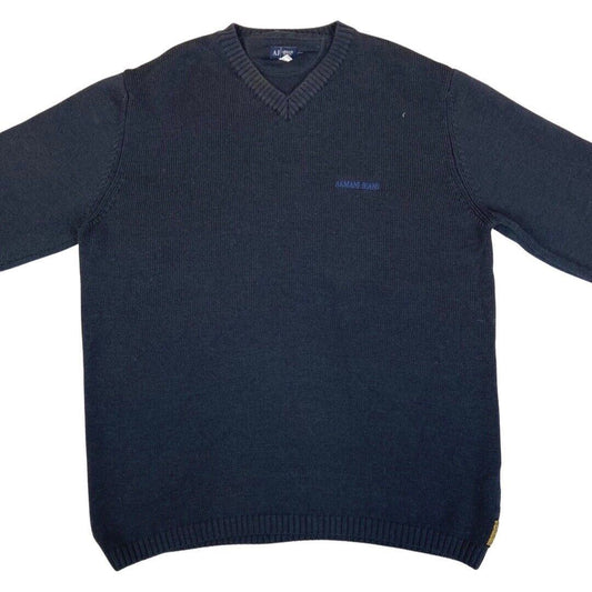Vintage 90s 00s Navy Blue Embroidered Armani Jeans Knit Sweater L