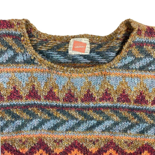 Vintage 90s Orange Blue Geometric Aztec Patterned Knitted Jumper S M