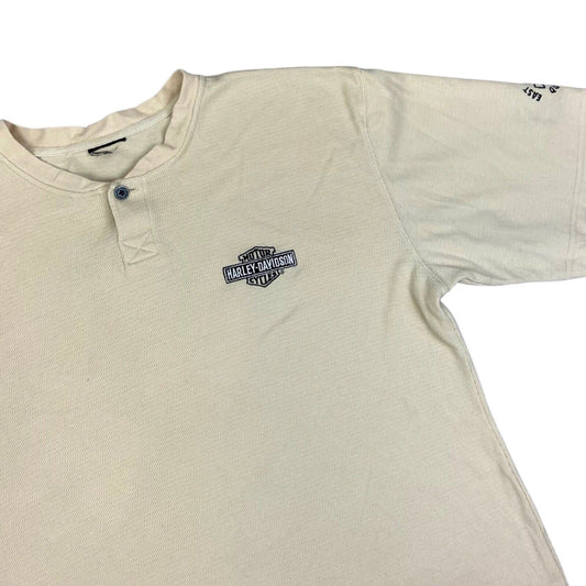 Vintage 90s 00s Cream Knitted Harley Davidson Embroidered T-shirt XL