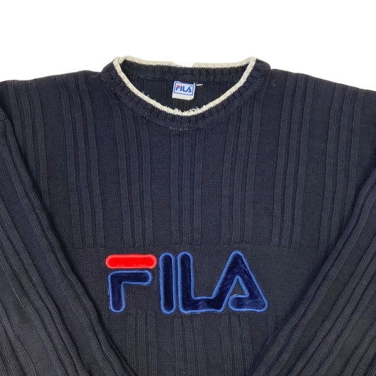 Vintage 90s Black Appliqué Fila Spell Out Knit Sweater XL