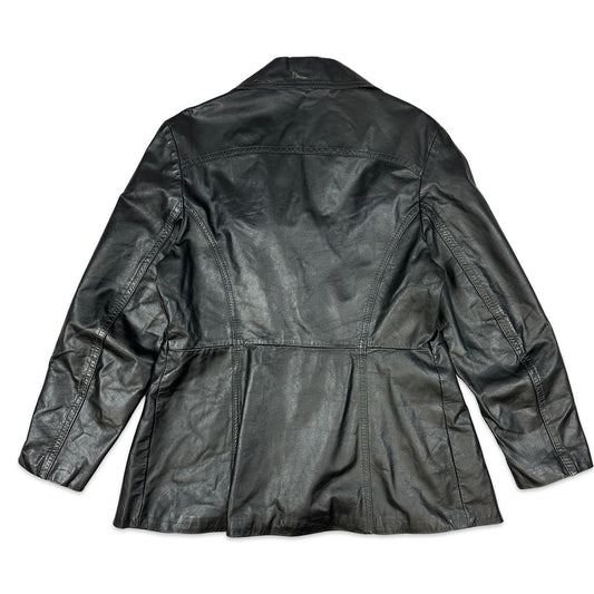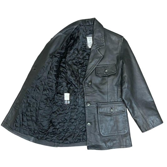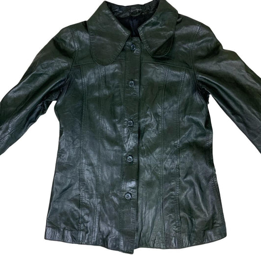 VTG 70s 'DESIGNED by M' DARK GREEN DOG EAR COLLAR LEATHER JACKET S 10
