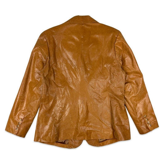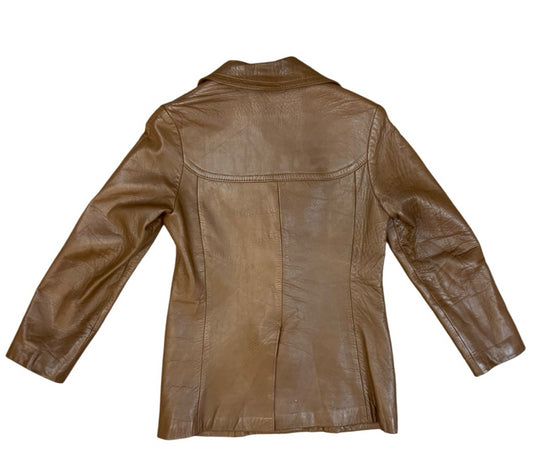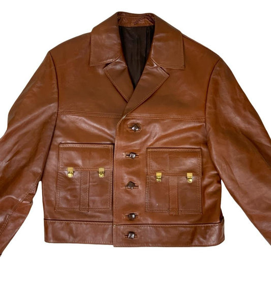 VTG 70s 80s BROWN LEDER-ORT POTSDAM NOTCHED COLLAR CROPPED LEATHER JACKET MEDIUM