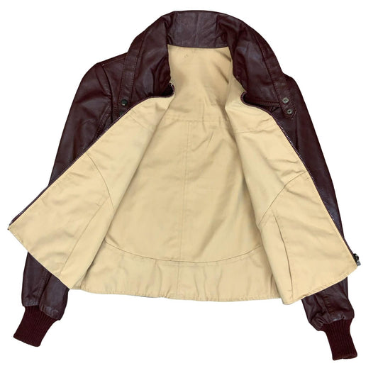 VTG 70s 80s SLIT END LTD BURGUNDY CREAM REVERSIBLE CROPPED LEATHER JACKET SMALL