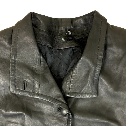 VTG 80s 'YESSICA' by C&A CROPPED BIKER SHOULDER PADDED LEATHER JACKET L 14 16