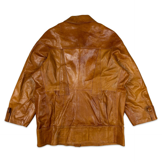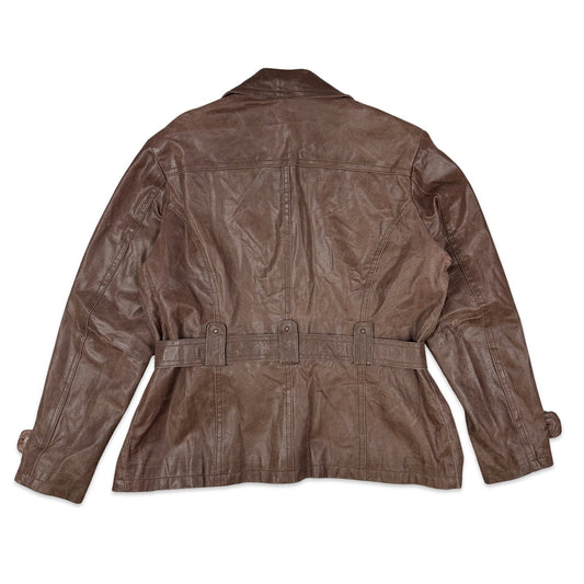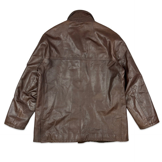 90s Y2K Vintage Brown Midi Leather Jacket 12