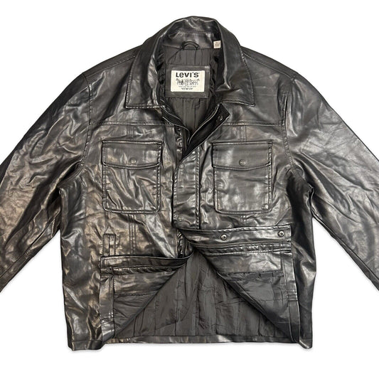 VTG STYLE LEVIS BLACK SOFT LEATHER JACKET LINED 4 POCKET BUTTON DOWN L 42”