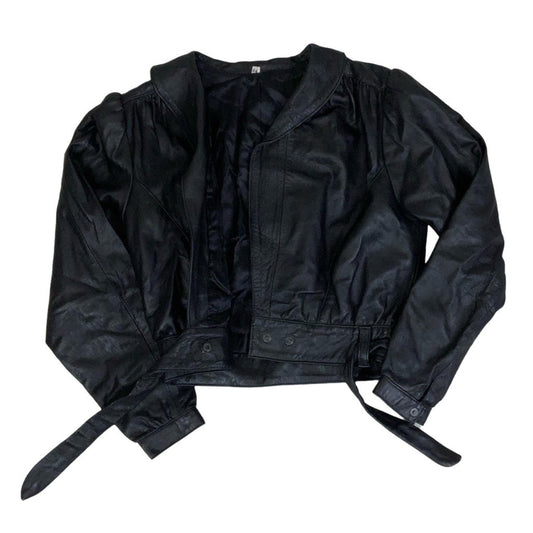 Vintage 90s Black Crop Tie-Up Biker Punk Leather Jacket 12 14 S