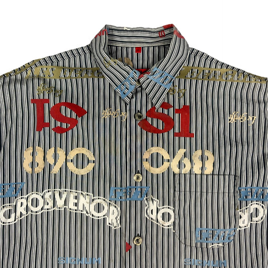 Y2K Black & White Striped Shirt with Graphic Print XL